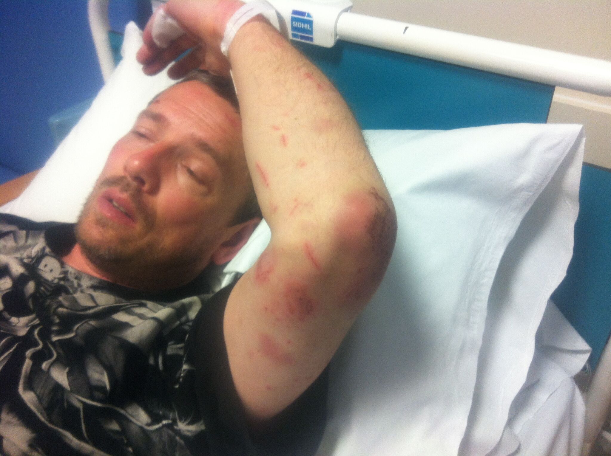 The photo below shows some of Paul’s injuries. It was taken by his wife Anna, whilst Paul was still under ‘Police guard’ at the hospital. I would ask you to reflect on the fact that this was the result of what the Police deemed to have been a “welfare visit” to his home…
