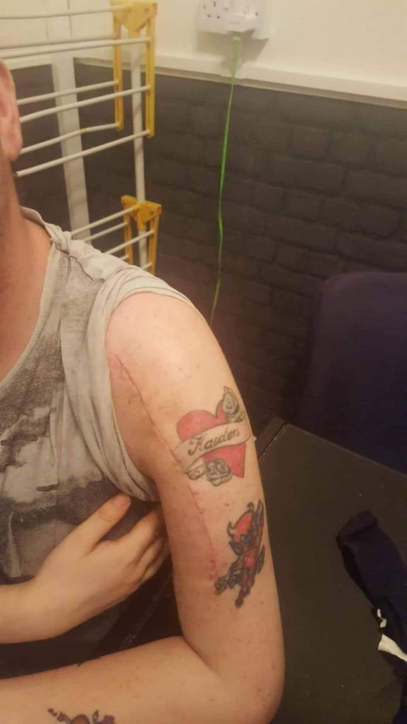 After his terrible injury, John required an operation which involved inserting a metal plate and pins into his left arm to fix the fracture. This left him with a long scar down his arm, which served as a constant reminder of what the Police had done to him, as well as persistent symptoms of stiffness and aching in his arm.